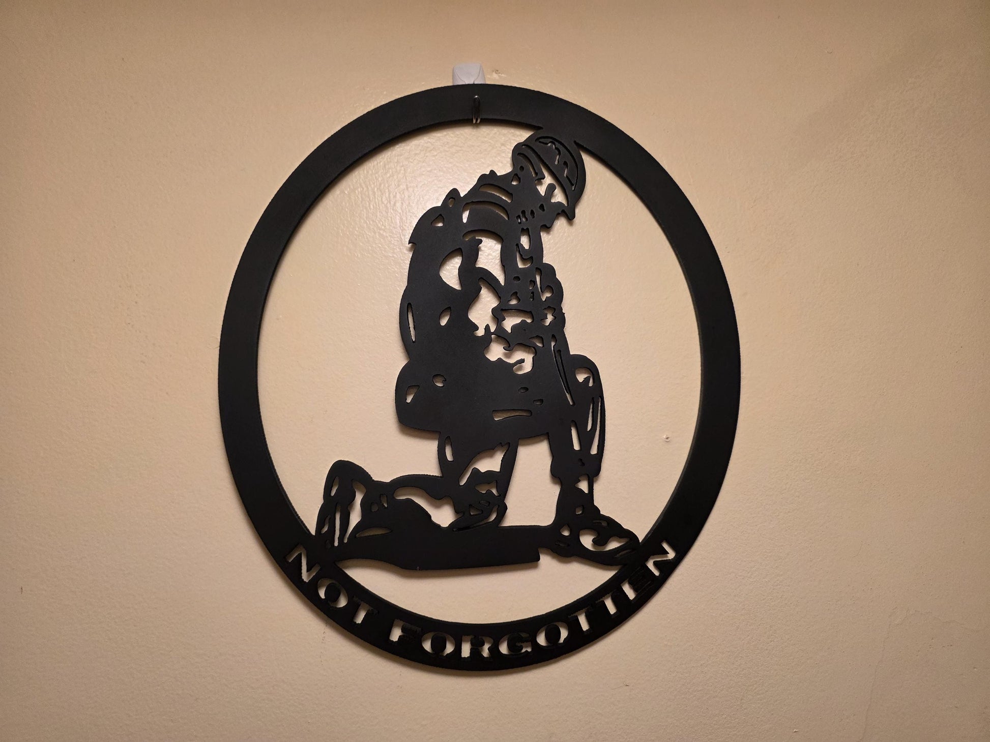This is a memorial type wall hanging. This peice resonates with me personally. If you have lost a military member perhaps this peice can help with you loss. It is a heavier peice made with 10 gauge steel for a lifetime of viewing pleasure. Great gift for the Army veterans. Made to order.